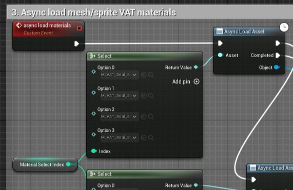 3. Async load the chosen mesh/sprite VAT material instance.