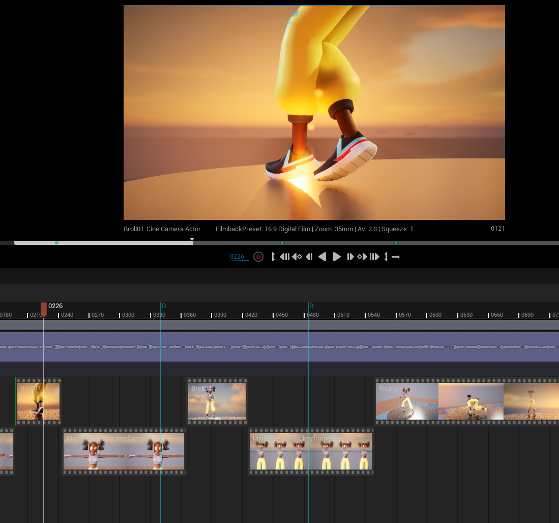 - Sequencer animation blending and keyframe animations.